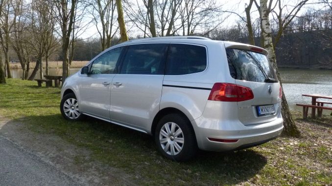 A Sharan akkora, mint egy VW Transporter, tengelytávja 2919 milliméter, a kétliteres dízelmotorral és DSG-vel a tömege 1800 kilogramm. A méretei komoly problémát jelentenek a szűk utcákban, a belvárosi parkolásban a parkolóradarnak és a kamerának nagy hasznát vesszük.