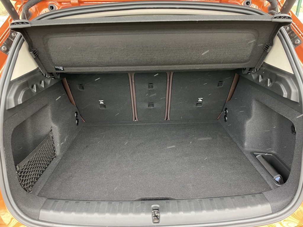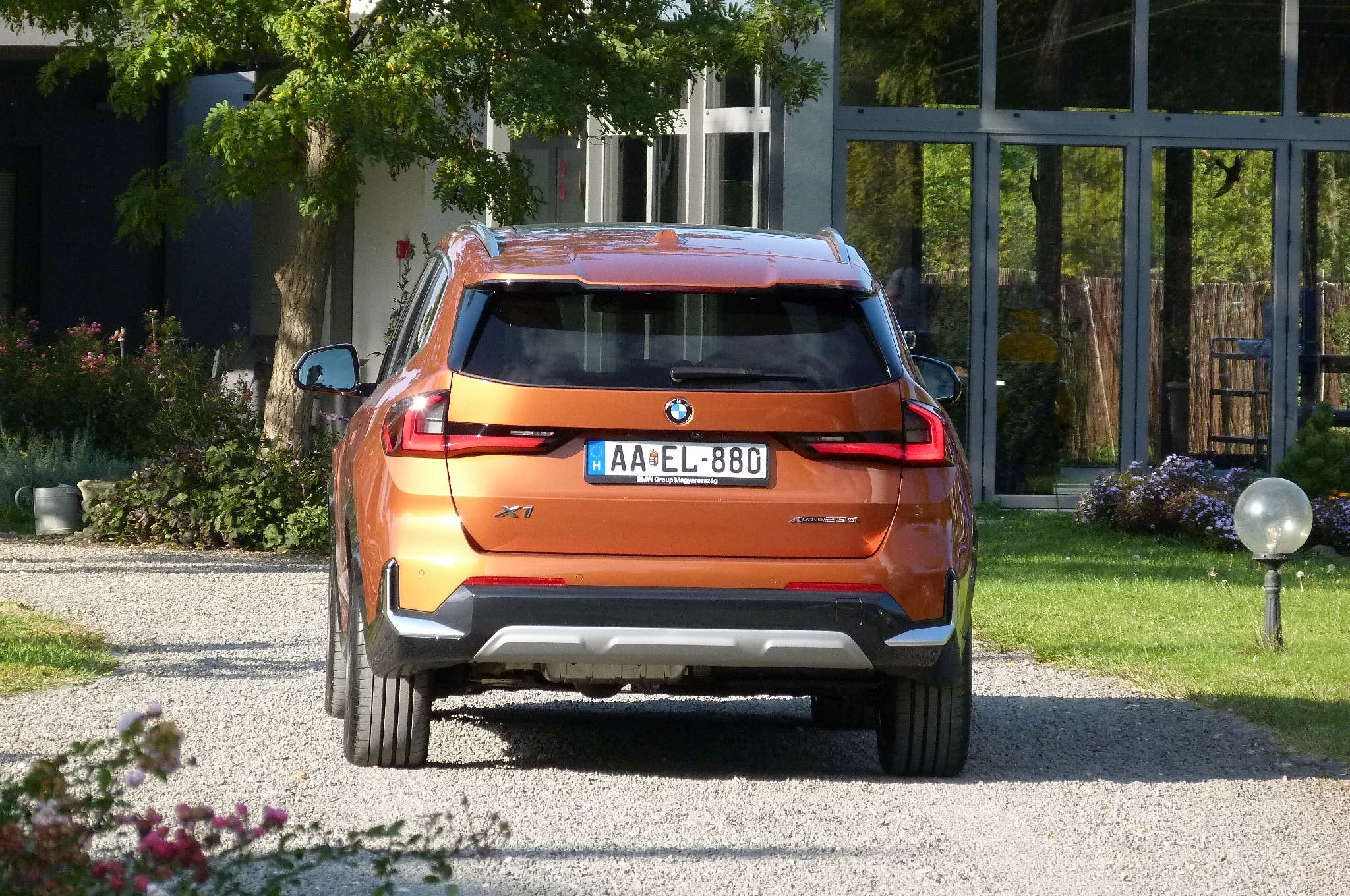 Hátul a BMW X1 megmarad annak a praktikus családi autónak, amely mindig is volt: a hátsó üléspad tologatható. Az elektromosan nyitható nagy méretű hátsó ajtó mögött 500 liternyi hely áll rendelkezésre (összkerékhajtással), a három hátsó üléselem lehajtásával pedig akár 1545 liternyi cucc is elfér – 50 literrel több, mint az elődben.