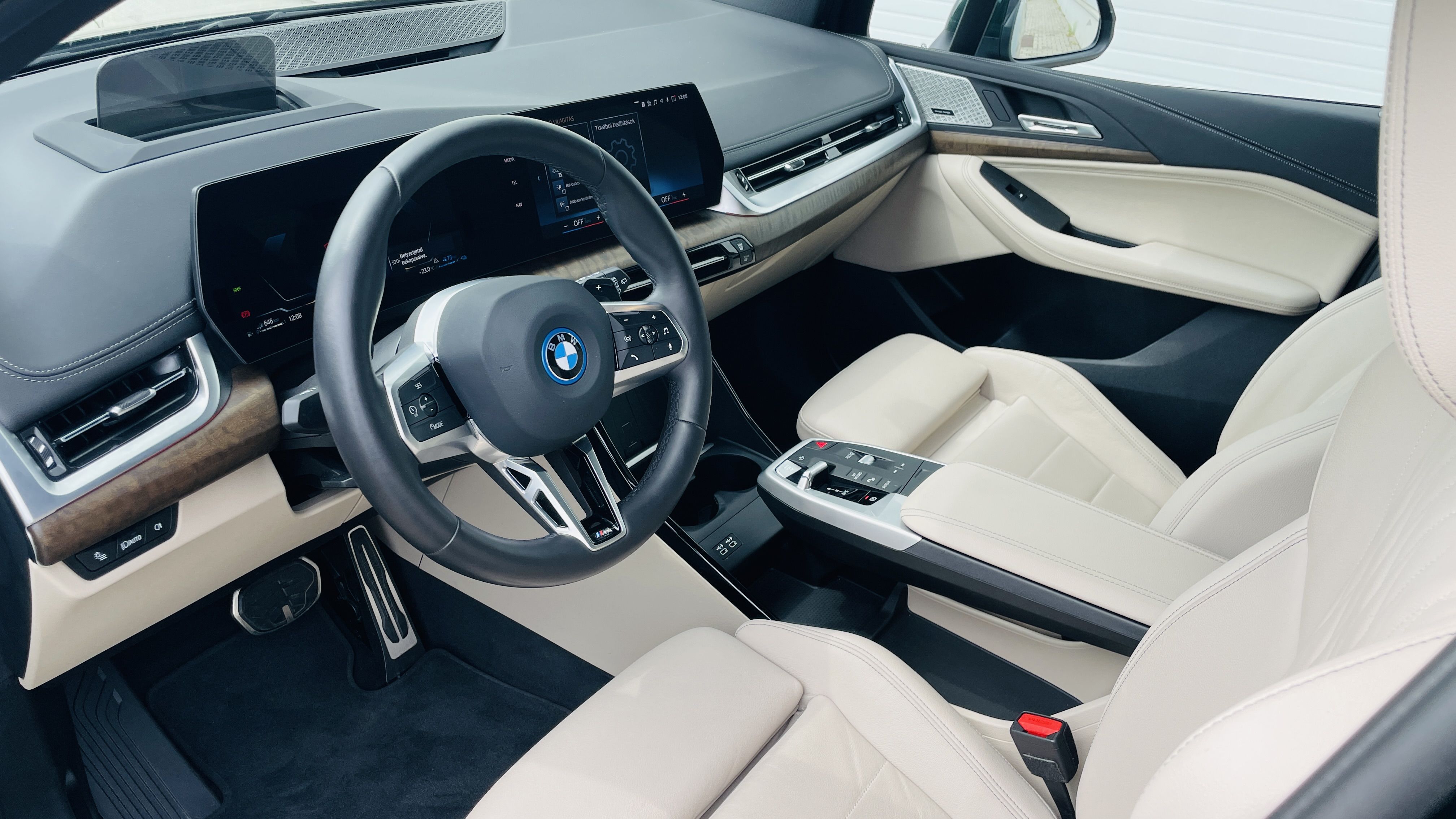 A kényelmes hátsó ülések variálhatók (az elsők is kényelmesek – M Sportcsomagban kapjuk – , simán levezettem 600 kilométert különösebb hátfájás nélkül, ráadásul van masszázsfunkció is…): a hátsó üléstámlák rakodóhelyzetbe állításával a csomagtér kapacitása akár 90 literrel is megnövelhető. A hátsó ülések 13 centiméteres úton csúsztathatók előre és hátra. A hátsó üléstámlák 40:20:40 arányban osztottak. A csomagtér kapacitása a konnektoros hajtás miatt csak 406-1370 liter (az ülések ledöntésével sík felületet kapunk). Alapáras az automata csomagtérajtó-működtetés. A töltőkábeleket el lehet rejteni a csomagtérpadlóba. Van vonóhorog is, elektromosan kiold és visszazár, csupán egy gombot kell megnyomni a csomagtartó jobb belső oldalfalán.
