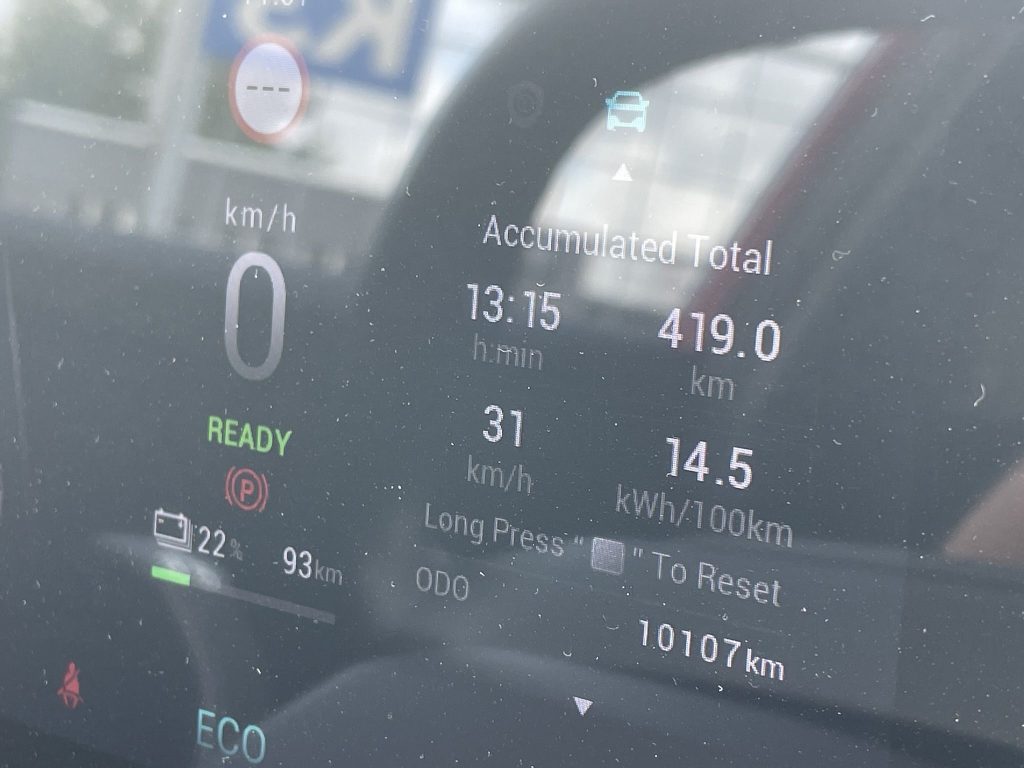 Az utastér egyszerű, sok cicomát nem kapott, a berendezés szegényes, a felhasznált anyagokról ordít az olcsóság. A jó fogású kormánykerék mögött egy kis, héthüvelykes monitor szolgál a vezető számára információs kijelzőként, míg középen egy 10,25 hüvelykes monitor jeleníti meg az információs és szórakoztató tartalmakat. Minden érintéssel működik, de a kijelzők reakcióján lehetne javítani. A fedélzeti menü okos, ám annyira rosszul rendezték el az információkat, hogy európai ember fel nem foghatja. Olyan, mintha egy zsákba beöntötték volna az összes infotainment rendszer összes tudását és neked kellene sötétben, bekötött szemmel megtalálni valamit, bármit, akármit. Tényleg minden adat kinyerhető, de programot kell írni hozzá. Én meg vezetni szeretném ezt a kocsit, eljutni innen oda, nem akarom programozni, könyörgök. A madárkák azt csiripelik (a német madárkák már meg is írták, hogy a frissítés a hardvert is érinti, kap a kocsi például hátsó ablaktörlőt), hogy érkezik egy újabb szoftverfrissítés, ami talán rendet tesz a sorok között (és lehetővé teszi az egypedálos vezetést). Az is dühítő például, hogy minden beállítást elfelejt, ahogy beülünk, kezdhetjük elölről (például a beállított menetmód, kormányrásegítés stb. beállítását). Balesetveszélyes folyton nyomkodni a képernyőt. Az Apple CarPlay is lehetne már vezeték nélküli, vezetékkel amúgy jól megy.