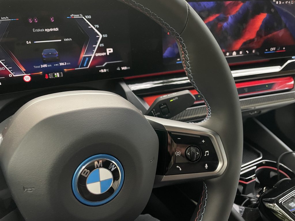 Az Év Magyar Autója 2024 versenyben nevezett BMW i5 kombinált töltőegysége alapfelszereltségként 11 kW, az opcionális extrafelszereltség részeként pedig akár 22 kW töltési kapacitású váltakozó áramú (AC) járműtöltést kínál. A modell nagyfeszültségű akkumulátora legfeljebb 205 kW-tal táplálható egyenáramú (DC) ultragyors töltőn, az energiatároló egység töltöttségi szintje körülbelül 30 perc alatt 10 százalékról 80 százalékra növelhető – ideális körülmények között. Otthon a töltés 40-45 órát vesz igénybe, az egyhetes teszt alatt a kocsi mindig kábelen lógott, de hideg, esős, nyirkos, kellemetlen időjárás ellenére nem éreztem hatótávparát.