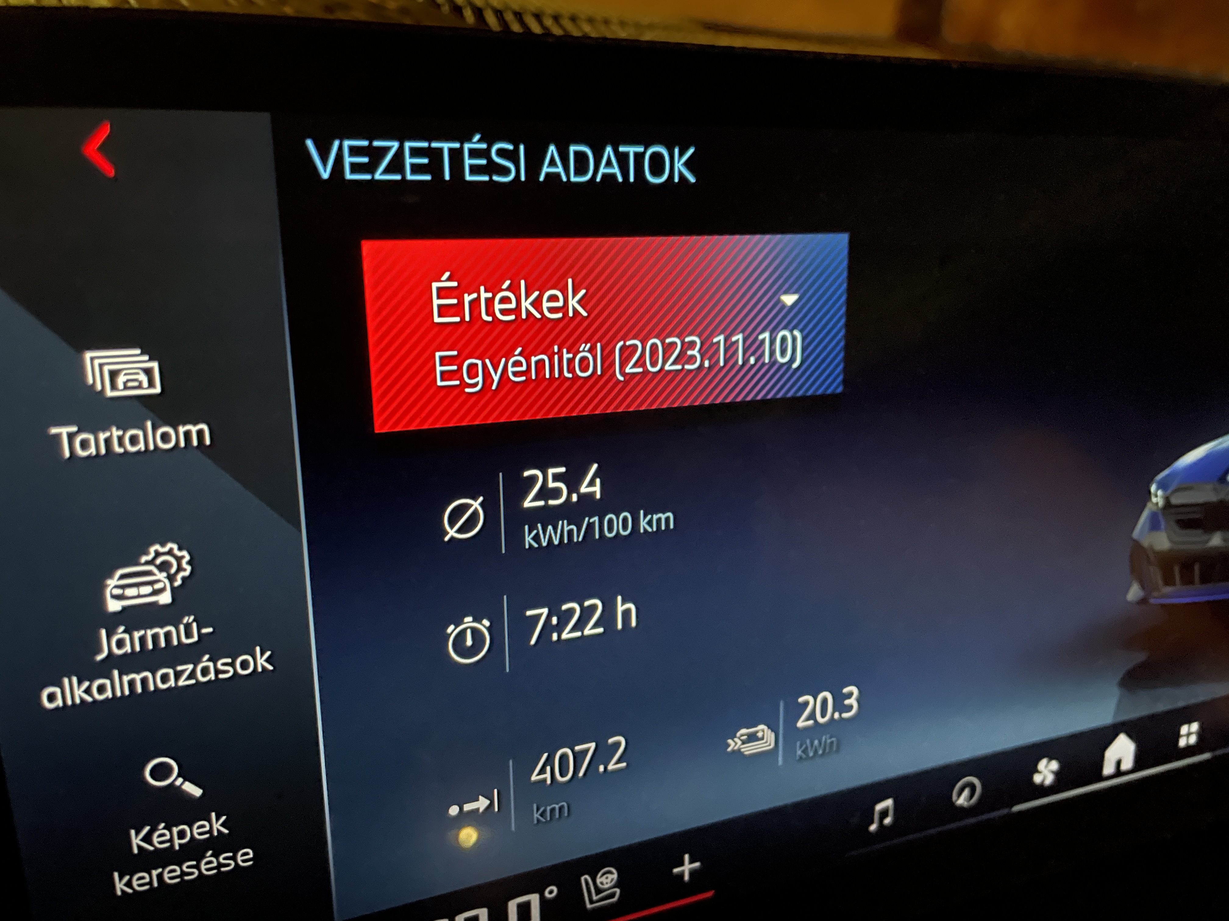 A 400 voltos, nettó 81,2 kWh kapacitású nagyfeszültségű lítiumion-akkumulátort a mérnökök helytakarékosan, a modell padlólemezébe építették be. Az utastér, a hajtáslánc és a nagyfeszültségű akkumulátor optimális hűtéséért és fűtéséért intelligens vezérlésű hőszivattyú-technológia felel. Hasznos a hatótávnövelő funkció, amelynek aktiválásával 25 százalékkal is megnövelhető a hatótáv – a leadott teljesítmény és a kényelmi funkciók rovására. A hatótáv erősen vezető- és időjárásfüggő, ezúttal azonban a vezetőn van a hangsúly. Nehéz 25 kilowattóra/100 kilométer környékén tartani a fogyasztását, nekem sikerült, de szenvedtem a bennem lakozó ördögökkel. Elméletileg 420 kilométer volt a legnagyobb hatótáv, amit az autó megengedett volna normál körülmények között, ám fűtéssel ez 360-ra zsugorodott, valós használatban 320-350 kilométernél többet nem vállaltam be egy töltéssel. Autópályán sem kell szégyenkeznünk, igazából sehol sem, hisz nincs ellenfele ennek az autónak az utakon.